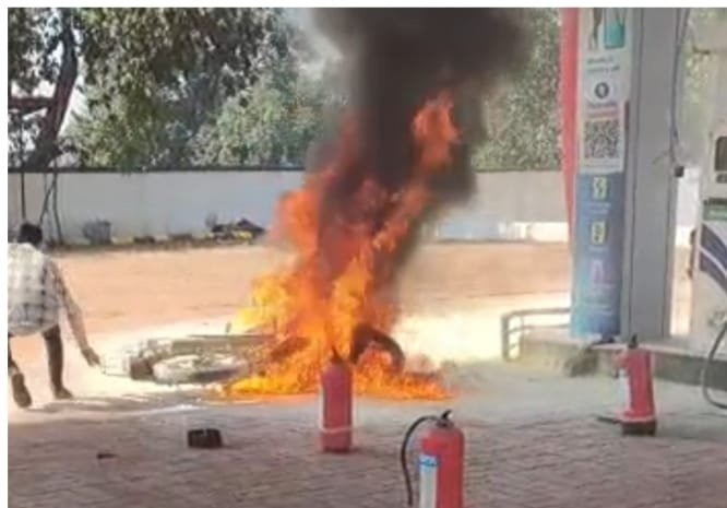 वाहन मालिक ने स्थिति को भांपते हुए तुरंत बाइक से कूदकर अपनी जान बचाई।। जैसे ही आग ने जोर पकड़ा, पेट्रोल पंप के कर्मचारी हरकत में आए तुरंत पेट्रोल गेज बंद किया गया, मशीनें बंद की गईं और अग्निशमन यंत्रों से आग पर काबू पाने का प्रयास शुरू हुआ।। आग की लपटें इतनी तेज थीं कि कुछ ही देर में बाइक की टंकी ब्लास्ट हो गई।। चारों ओर धुआं और लपटें फैल गईं, लेकिन सौभाग्य से उस वक्त पंप की सभी मशीनें बंद थीं।। यही कारण रहा कि आग अन्य वाहनों या पंप क्षेत्र तक नहीं फैली।। थोड़ी भी देर होती तो आग पूरे फ्यूल स्टेशन को अपनी चपेट में ले सकती थी कर्मचारियों की फुर्ती और सतर्कता के कारण एक बड़ा हादसा टल गया।