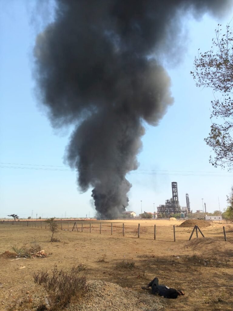 डामर फैक्ट्री में लगी जमकर आग। मौके में फायर ब्रिगेड पहुंची है। आग इतनी भीषण है 10 किलोमीटर इलाके में दिख रहा है। धुआं घटना की सूचना मिलते ही पुलिस और दमकल विभाग की टीमें मौके पर पहुंचीं और राहत एवं बचाव कार्य में जुट गईं।