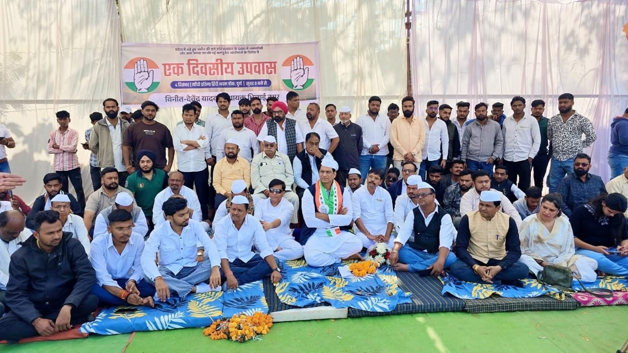 देवेंद्र का कहना है कि बदलाव की हर आंधी दुर्ग जिले से ही उठी है, दो वर्षों में ही हर मोर्चे पर फैल हो चुकी विष्णुदेव सरकार की उल्टी गिनती शुरू हो चुकी है। उपवास में पूर्व विधायक अरुण वोरा ,सीजू एंथोनी, आर एन वर्मा ,पूर्व महापौर नीता लोधी, पार्षद लालचंद वर्मा, आदित्य सिंह, शरद मिश्रा सहित बड़ी संख्या में कांग्रेस जन शामिल है।उपवास शाम तक चलेगा।