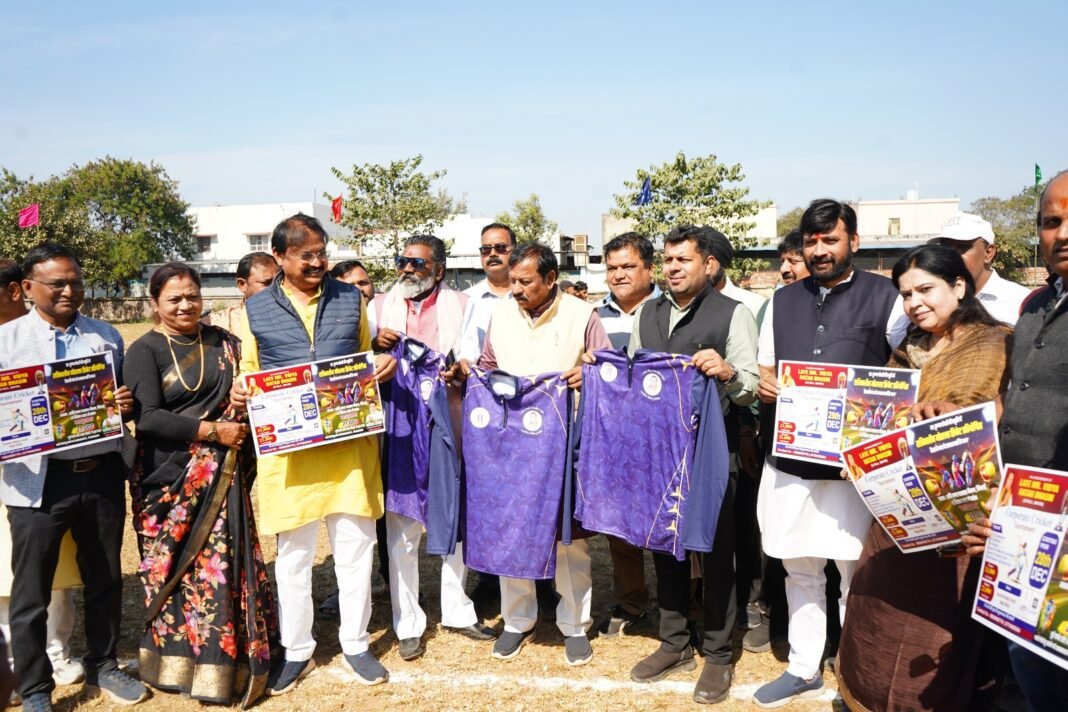 भिलाई। आज स्वर्गीय कृष्णा चौधरी स्मृति मोहल्ला क्रिकेट प्रतियोगिता एवं स्वर्गीय विद्या रत्न भसीन स्मृति कॉर्पोरेट क्रिकेट टूर्नामेंट के टी शर्ट व पोस्टर का विमोचन सांसद विजय बघेल द्वारा किया गया पोस्टर विमोचन कार्यक्रम में श मनीष पांडे, महेश वर्मा , दिव्या भसीन मक्कड़ प्रमोद सिंह , पार्षद संतोष मौर्य करमजीत सिंह बेदी कल्पना स्वामी उपस्थित थे।