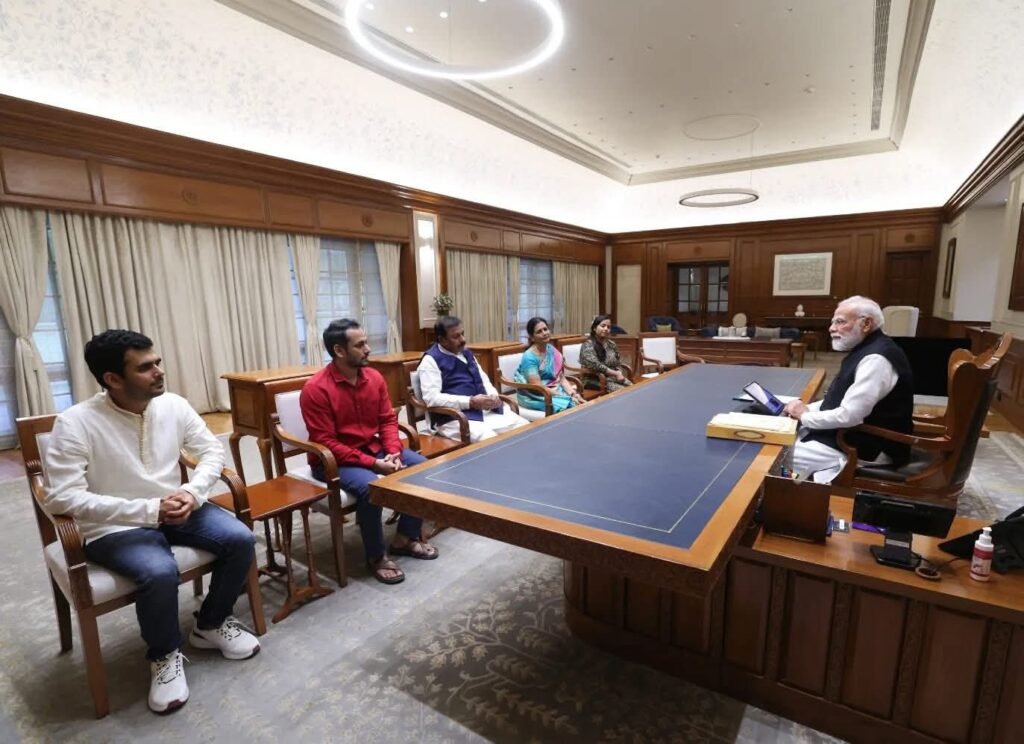 दुर्ग लोकसभा सांसद विजय बघेल (Vijay Baghel) ने अपने परिवार सहित देश के नरेंद्र मोदी से उनके दिल्ली स्थित निवास पर सौजन्य भेंट की।