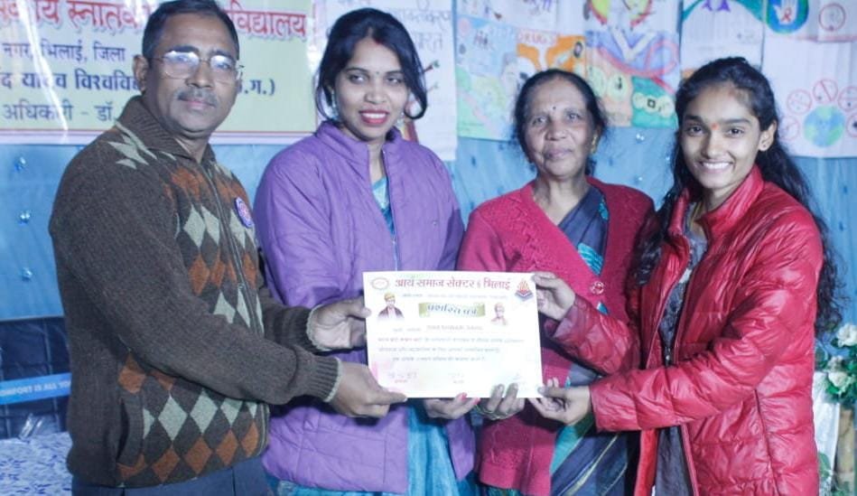 आर्य समाज द्वारा सम्मानित विद्यार्थियों में तन्नु प्रिया साव, पलक सिंह राजपूत, डिकेश्वरी साहू, ख़ुशी सोनी, साक्षी साहू, काजल निषाद, रूपाली पटेल (बीए अंतिम वर्ष), हेमा पटेल, स्वाति साहू, जिज्ञासा चक्रधारी, अनु कर्मोकर, गायत्री सिक्का, रब्बिका बंजारे, वी. अंजलि, कुमकुम विश्वकर्मा, विधि साहू, नीलम चंद्रवंशी और अंशू मिश्रा शामिल हैं। इन सभी विद्यार्थियों ने सेवा, अनुशासन और सामाजिक चेतना का प्रेरक उदाहरण प्रस्तुत किया। यह राष्ट्रीय सेवा योजना शिविर केवल एक कार्यक्रम नहीं, बल्कि सेवा से साधना और साधना से सशक्त व्यक्तित्व निर्माण की जीवंत प्रयोगशाला बनकर उभरा है।