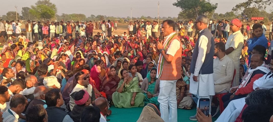 (यतेंद्र जीत सिंह “छोटू”)खैरागढ़ : जिले के श्री सीमेंट फैक्ट्री खुलने से प्रभावित गांव के किसानों से मिलने बुधवार को प्रदेश कांग्रेस कमेटी के अध्यक्ष दीपक बैज सहित विधायकों की टीम विचारपुर पंडरिया पहुंची।। उन्होने किसानों से चर्चा कर फैक्ट्री के विरोध में हो रहें आंदोलन की वास्तविक स्थिति से अवगत हुऐ।। किसानों ने एक स्वर में कहा कि हमारी भूमि हमारी धरोहर है इसे हम नहीं छोड़ेंगे वही बीते शनिवार 6 दिसम्बर को प्रभावित क्षेत्र से ब्लाक मुख्यालय के लिऐ निकली किसानों की विशाल ट्रैक्टर रैली में हुऐ लाठी चार्ज की दुखत घटना को बताया।। दीपक बैज ने किसानों से कहा की पार्टी के प्रत्येक सिपाही किसानों के साथ है।। आज भी और कल भी इस जनहित किसानों के आंदोलन में हक नहीं मिलने तक साथ खड़े रहेंगे।।