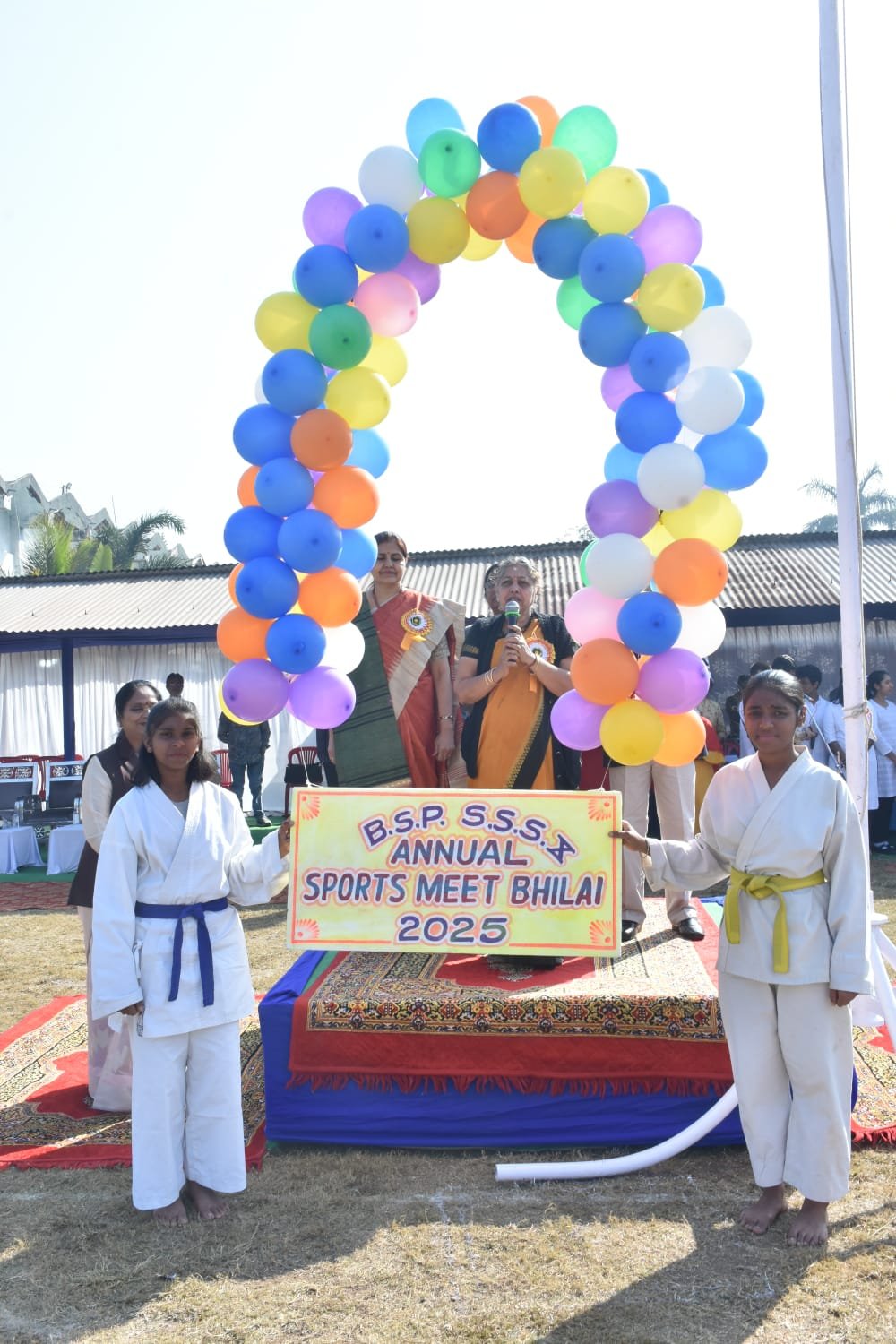 भिलाई। बीएसपी सीनियर सेकेंडरी स्कूल, सेक्टर-10 में वार्षिक खेल उत्सव–2025 का भव्य आयोजन विद्यालय के क्रीड़ा प्रांगण में भिलाई इस्पात संयंत्र के महाप्रबंधक (प्रोजेक्ट्स) राधिका एस. श्रीनिवासन के मुख्य आतिथ्य में किया गया। इस अवसर पर विशेष अतिथि के रूप में महाप्रबंधक (शिक्षा) शिखा दुबे तथा उप महाप्रबंधक (क्रीड़ा, सांस्कृतिक एवं नागरिक सुविधाएँ) राजेन्द्र प्रसाद उपस्थित थे। कार्यक्रम की शुरुआत ध्वजारोहण एवं खेल उत्सव की घोषणा के साथ हुई। तत्पश्चात रंग-बिरंगे गुब्बारे आकाश में छोड़े गए।