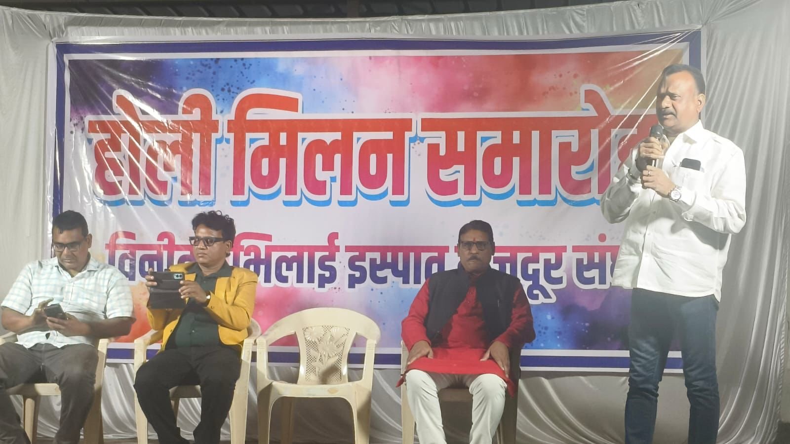 भिलाई। भिलाई इस्पात मज़दूर संघ यूनियन के द्वारा होली मिलन समारोह का आयोजन बड़े ही हर्षोल्लास के साथ संपन्न हुआ ।होली मिलन कार्यक्रम में कवि सम्मेलन का भी आयोजन किया गया जिसमें प्रमुख रूप से कवि गजराज मंहत हास्य एवं हास्य व्यंग्य कवि ओमवीर करण पंडित गंगाराम चौबे उपस्थित रहे इन कवियों के द्वारा अपने कविताओं और व्यंग्य से कार्यकर्ताओं को मन्त्र मुग्ध कर सभी का मन मोह लिया और सभी ने ताली बजाकर कवियों का ज़ोरदार स्वागत एवं अभिनंदन किया और सभी ने कवि सम्मेलन का आनंद उठाया।