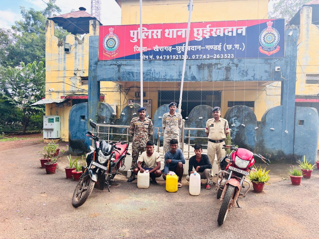 खैरागढ़ : पुलिस टीम केसीजी के द्वारा लगातार चलाये जा रहे विभिन्न थानों में थाना दिवस के अवसर पर जो ग्रामीणों को बुलाकर वहां की मूलभूत समस्याओं से अवगत होकर उसके निराकरण का आश्वासन दिया जाता है,जिसके अंतर्गत मोहगांव थाना क्षेत्र एवं छुईखदान थाना क्षेत्र में अवैध शराब कोचियाओं के विरूध्द ग्रामीणों ने शिकायत की थी जिसका असर देखने को मिल रहा है।। रविवार 02 अक्टूबर 2025 को (1) आरोपी दयानंद सेन उर्फ देवा उम्र 26 साल साकिन खुड़मुड़ी थाना छुईखदान जिला केसीजी, (2) हरे सिंग धुर्वे पिता सुध्दु धुर्वे उम्र 27 साल साकिन बांधाटोला थाना मोहगांव जिला केसीजी, (3) प्रेम सिंग धुर्वे पिता सुध्दु धुर्वे उम्र 23 साल साकिन बांधाटोला थाना मोहगांव जिला केसीजी को छुईखदान पुलिस टीम के द्वारा नहर नाली के रोड़ के पास ग्राम खुड़मुड़ी, बड़े पुल के पास ग्राम बाईकटोरी, स्काउड गाईड पुल के पास मेन रोड़ ग्राम बाईकटोरी में रेड कार्यवाही किया गया।।