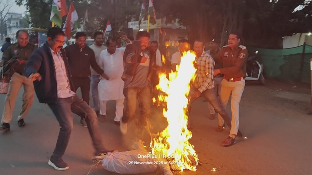 रायपुर। जमीन की बढ़ी गाइडलाइन की दरों के विरोध में तथा बढ़ी गाइडलाइन की दरों की वापसी मांग को लेकर मुख्यमंत्री विष्णुदेव साय का पुतला प्रदेश के सभी जिलों में जलाया।