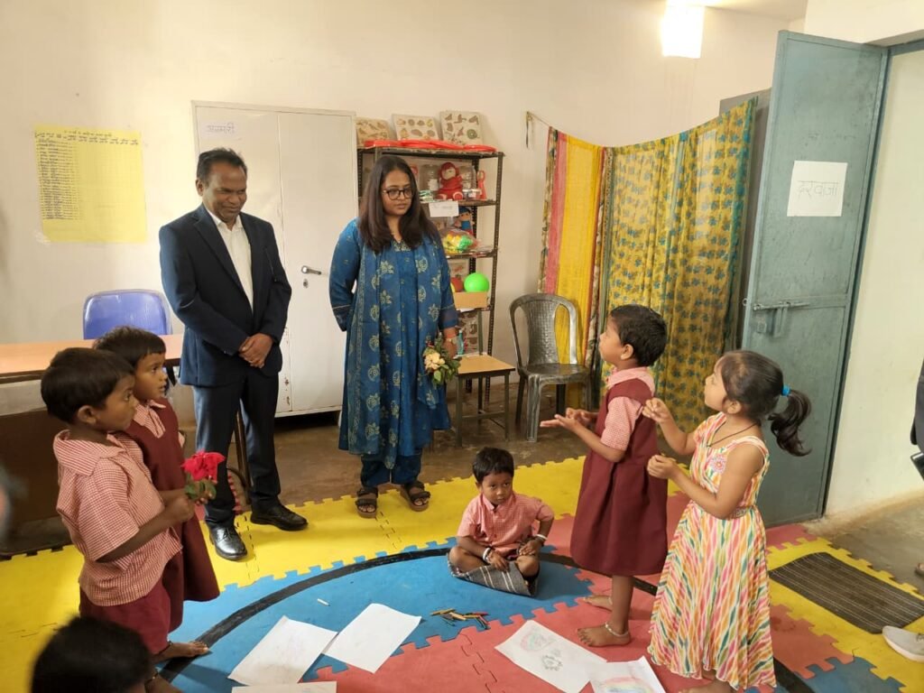 आंगनबाड़ी पहुंच प्रभारी सचिव ने बच्चों को सुनाई कविता