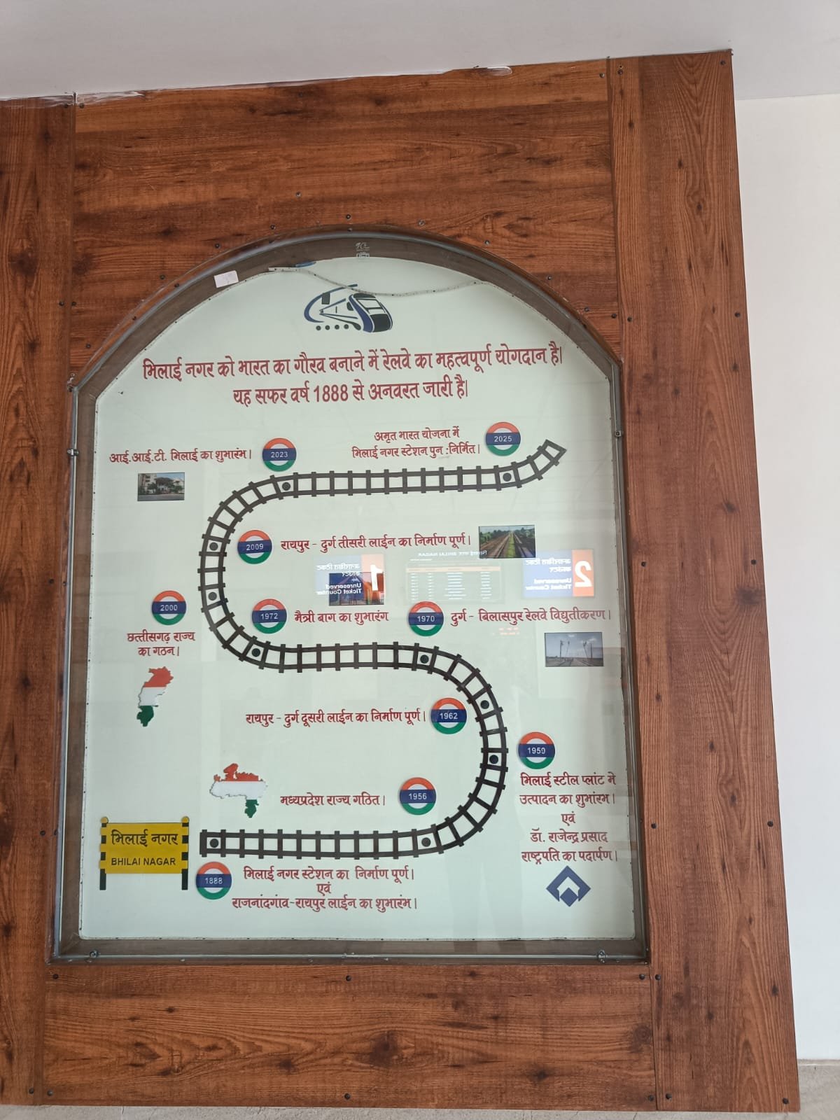भिलाई, दुर्ग। डिस्प्ले बोर्ड की शुरूआती लाइन में .1888 में भिलाई नगर रेलवे स्टेशन की शुरूआत बताई गई है, जो पूरी तरह गलत है। वास्तविकता यह है कि 1888 में राजनांदगांव से रायपुर तक रेलवे लाइन बिछाई जा चुकी थी लेकिन यहां तब के सुपेला गांव में कोई रेलवे स्टेशन अस्तित्व में नहीं आया था…