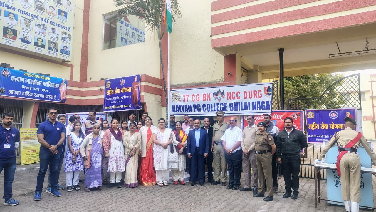 भिलाई। शिक्षाधानी भिलाई के सेक्टर-7 स्थित कल्याण कॉलेज में गणतंत्र दिवस मनाया गया। इस मौके पर लोकतांत्रिक देश भारत में गण या हरेक व्यक्ति की महत्ता बताई गई। साथ ही संविधान का पाठ भी पढ़ाया गया। कल्याण कॉलेज में 77वां गणतंत्र दिवस ऊर्जा, उल्लास, उत्साह, उमंग और बड़े आनंद के साथ मनाया गया। कॉलेज के प्राचार्य डॉ.विनय शर्मा के द्वारा ध्वजारोहण किया गया। उन्होंने भारत के गणतंत्र होने की ऐतिहासिक पृष्ठभूमि पर विस्तार से प्रकाश डाला। राष्ट्रीय गीत की 150वीं वर्षगांठ के अवसर पर वंदे मातरम का गायन भी किया गया।