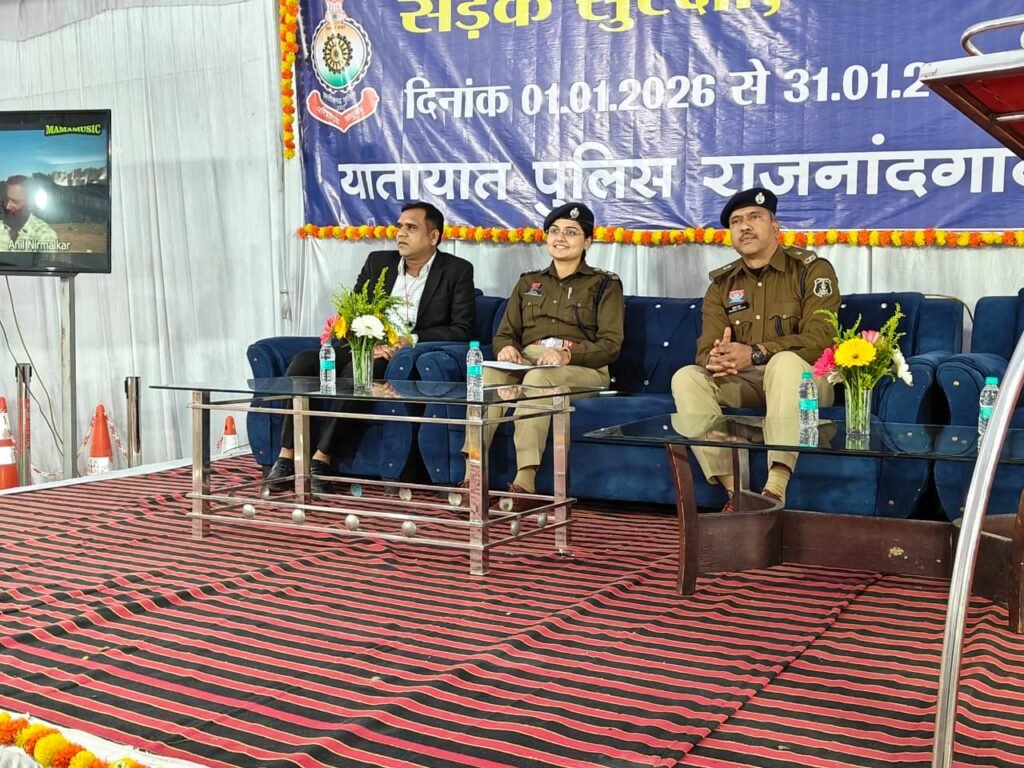 राजनांदगांव। 01 जनवरी को यातायात शाखा राजनांदगांव प्रांगण में यातायात सड़क सुरक्षा माह एवं यातायात सुरक्षा प्रदर्शनी का शुभारंभ सुश्री अंकिता शर्मा पुलिस अधीक्षक राजनांदगांव के निर्देशन में मुकेश ठाकुर अति. पुलिस अधीक्षक नक्सल ऑपरेशन द्वारा प्रदर्शनी में यातायात मॉडल, यातायात उपकरण, यातायात सामग्री, दुर्घटना नियंत्रण के प्रचार-प्रसार हेतु पॉपलेट-पोस्टर का फीता काटकर शुभारंभ किया गया। उद्घाटन समारोह में अतिरिक्त पुलिस अधीक्षक पुष्पेन्द्र नायक, प्रशिक्षु आईपीएस नगर पुलिस अधीक्षक वैशाली जैन, थाना प्रभारी कोतवाली निरीक्षक नंदकिशोर गौतम, थाना प्रभारी लालबाग निरीक्षक राजेश साहू, पुलिस, पुलिस चौकी तुमड़ीबोड़ प्रभारी निरीक्षक दिलीप पटेल यातायात प्रभारी निरीक्षक नवरतन कश्यप, चौकी चिखली प्रभारी उप निरीक्षक कैलाशचंद मरई, समस्त यातायात स्टॉफ, पत्रकारगण एवं ऑटो/ई-रिक्शा चालक उपस्थित थे।