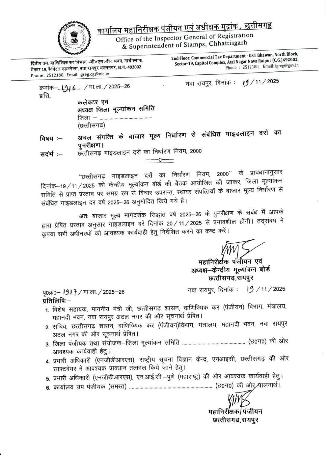 1/ 31 मार्च 2024 के बाद से पूर्व की भूपेश बघेल सरकार द्वारा कलेक्टर गाइड लाइन मुल्य मे जो तीस प्रतिशत की छूट दी जा रही थी उसे खत्म कर दिया जिस से स्टाम्प ड्यूटी महंगी हो गई।