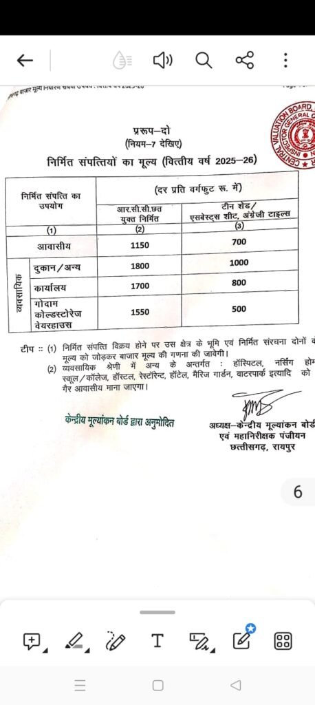 6/ पांच झटके देने के बाद भी साय सरकार को चैन नही मिला तो अंत मे कलेक्टर गाइड लाइन मुल्य मे पच्चीस से लेकर तीन सौ प्रतिशत की वृद्धि कर दी गई है