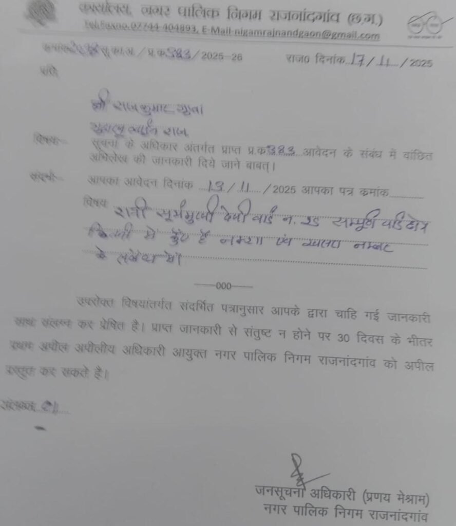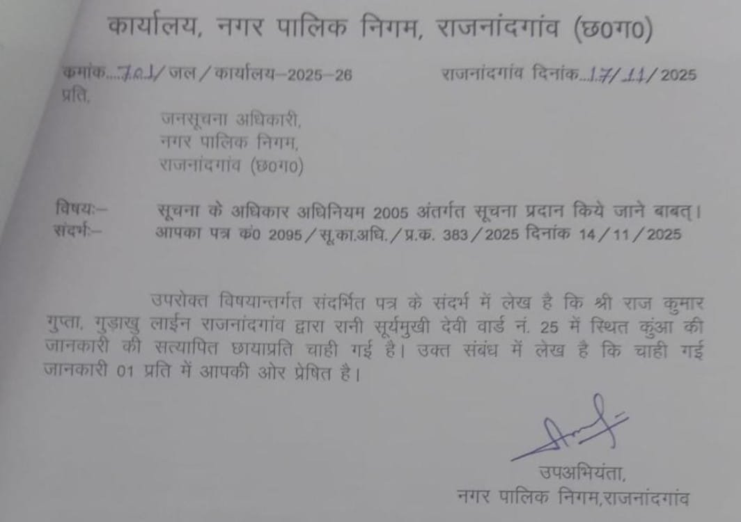 ”नगर निगम द्वारा आरटीआई में जो जानकारी दी गई है, वह केवल दफ्तरी खानापूर्ति नजर आती है। रानी सूर्यमुखी देवी वार्ड सहित कई वार्डों में कुओं का अस्तित्व संकट में है। यदि प्रशासन ने जल्द सर्वे नहीं कराया, तो यह भ्रष्टाचार का एक बड़ा मामला बन सकता है।”विशेष पड़ताल: कागजों में सिमटा राजनांदगांव का जल स्त्रोत; क्या भू-माफिया और प्रशासन की मिलीभगत से गायब हुए कुएं और तालाब?
