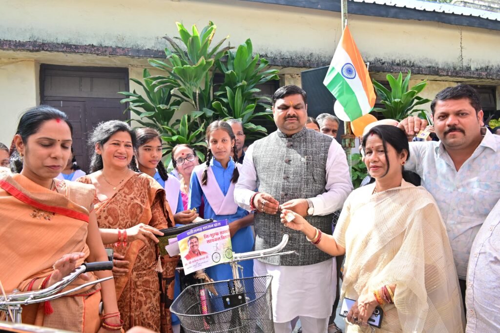 दुर्ग। स्कूल शिक्षा मंत्री गजेन्द्र यादव आज शासकीय आदर्श कन्या उच्चतर माध्यमिक विद्यालय तथा शासकीय उच्चतर माध्यमिक विद्यालय उरला स्कूल पहंुचे, जहां उन्होंने मुख्यमंत्री सरस्वती सायकल योजना के तहत 9वीं कक्षा की नवप्रवेशी छात्राओं को सायकल वितरित की।