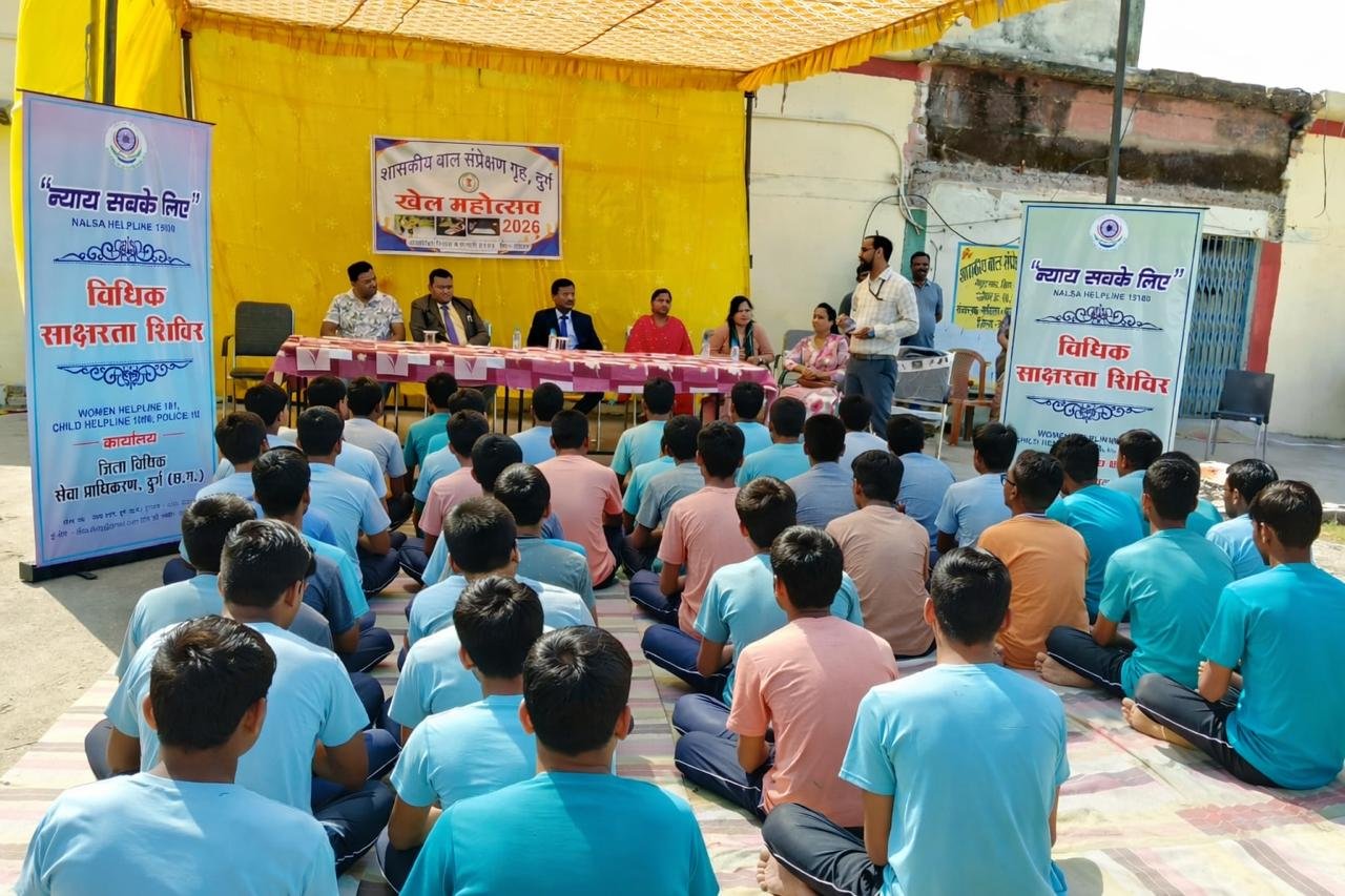 दुर्ग स्थित शासकीय बाल संप्रेक्षण गृह में आज बच्चों के सर्वांगीण विकास, मानसिक प्रसन्नता तथा खेल भावना को प्रोत्साहित करने के उद्देश्य से खेलकूद प्रतियोगिताओं का आयोजन किया गया। इस अवसर पर जिला एवं सत्र न्यायालय दुर्ग से प्रथम जिला एवं सत्र न्यायाधीश, किशोर न्याय बोर्ड के प्रधान मजिस्ट्रेट एवं प्रथम व्यवहार न्यायाधीश वरिष्ठ श्रेणी के द्वितीय अतिरिक्त न्यायाधीश की गरिमामयी उपस्थिति रही।