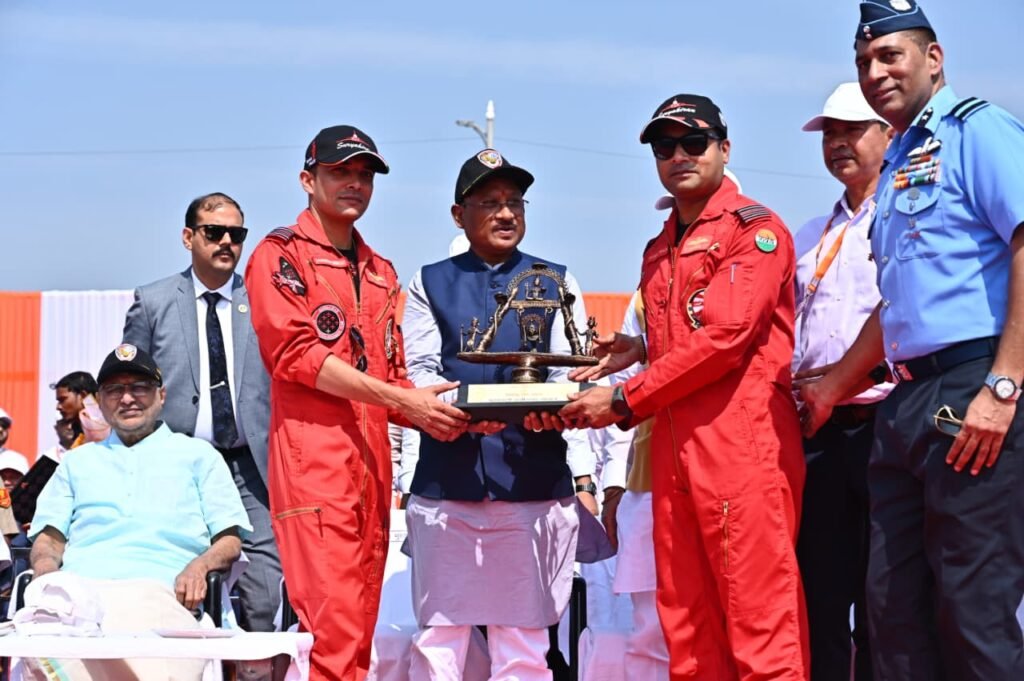 उप राष्ट्रपति सी.पी. राधाकृष्णन, राज्यपाल रमेन डेका, मुख्यमंत्री विष्णु देव साय और विधानसभा अध्यक्ष डॉ. रमन सिंह ने देखा एयर शो