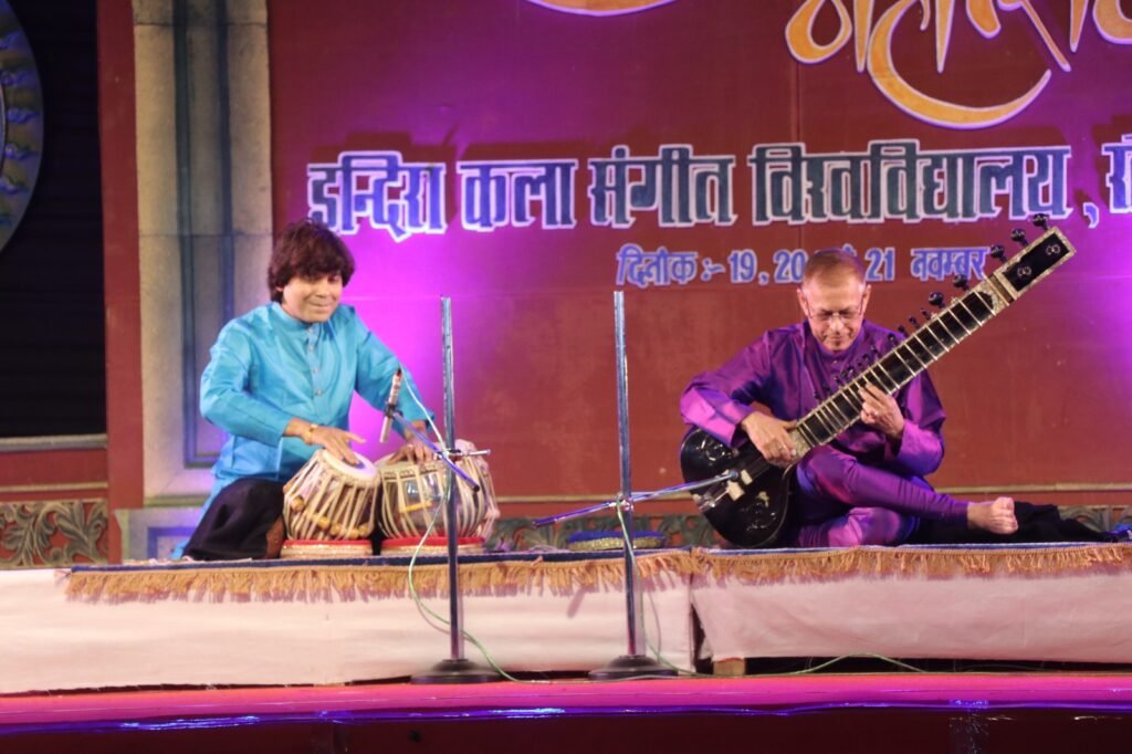 (यतेंद्र जीत सिंह “छोटू”)खैरागढ़ : महोत्सव के दूसरे गुरुवार दिन को पं. हरीश तिवारी दिल्ली के शास्त्रीय गायन, पद्मभूषण पं. बुधादित्य मुखर्जी कोलकाता (प. बं.) के सितार वादन, व्योमेश शुक्ला एवं समूह दिल्ली के राम की शक्ति पूजा तथा डॉ. पीसीलाल यादव एवं समूह गण्डई (छ.ग.) के लोकसंगीत : दूधमोंगरा की प्रस्तुति ने समां बांधे रखा।। दूसरे दिन मुख्य अतिथि के रूप में राजा आर्यव्रत सिंह राजपरिवार खैरागढ़ उपस्थित रहे।। कार्यक्रम की अध्यक्षता कुलपति प्रो.(डॉ.) लवली शर्मा ने की।।