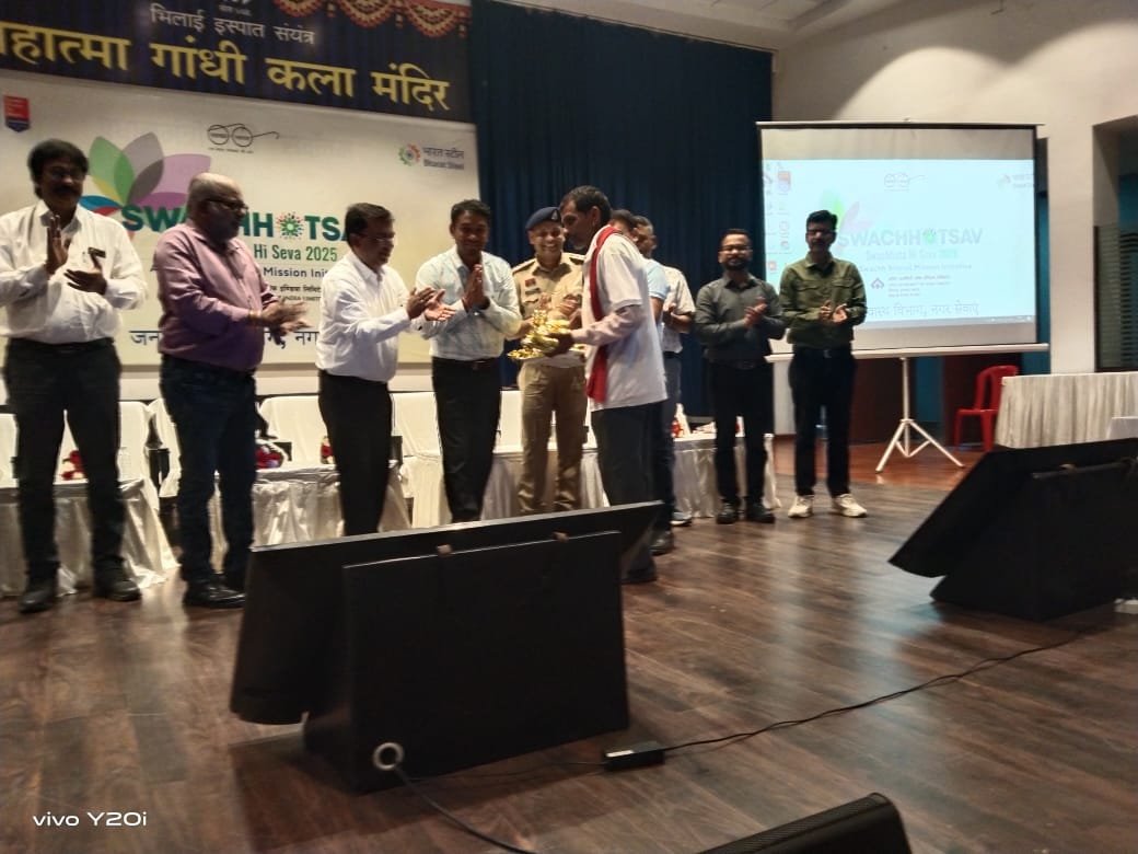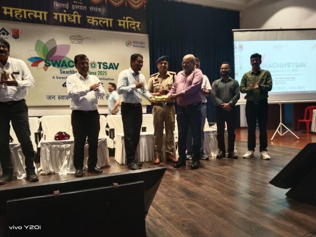 भिलाई। इस्पात मंत्रालय भारत सरकार के निर्देश के अनुपालन में दिनांक 14 सितंबर से आरंभ हुये स्वच्छता अभियान का समापन भिलाई इस्पात संयंत्र द्वारा आज 31 अक्टूबर, 2025 को महात्मा गांधी कला मंदिर, सेक्टर-6 में “स्वच्छता ही सेवा 5.0” स्वच्छोत्सव एवं नेपथ्य के सिपाही सफाई मित्रों के समाज में उनके योगदान के लिए सम्मान समारोह के रूप में आयोजित किया गया।